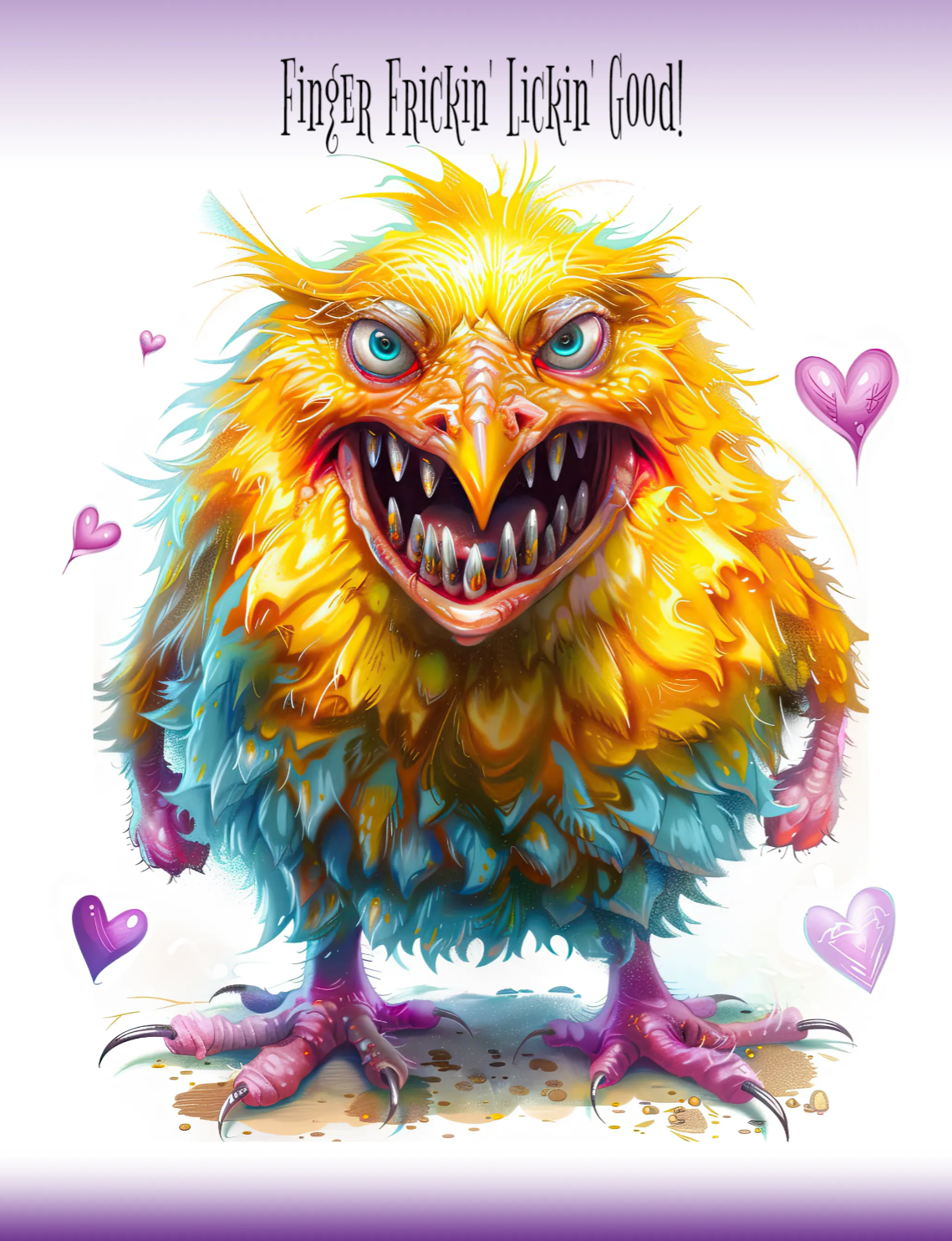 Scary Bunny and Fiends invites you into a world where sweet meets sinister. Including a stitched-up bunny with anger issues, a feathered freak who’s “finger frickin’ lickin’ good,” a seductive zombie babe, moody werewolves, and sinister midnight gardens that definitely whisper when you’re not looking.